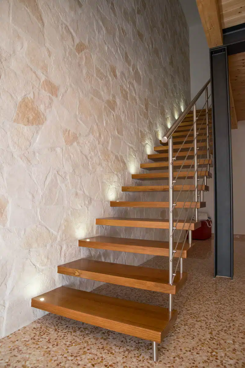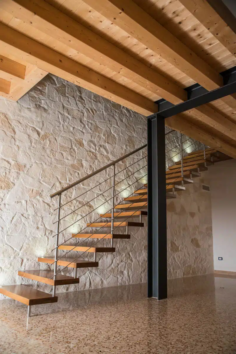 La scala a sbalzo rappresenta la scelta ideale per chi desidera soluzioni d’arredo leggere e raffinate. Note anche come scale autoportanti o sospese, queste strutture possono essere realizzate con una varietà di materiali, dal legno alla pietra, dal vetro al corian. Con il suo aspetto arioso e decisamente elegante, la scala a sbalzo si integra perfettamente in qualsiasi ambiente, sia classico che contemporaneo, senza appesantirlo. Oltre alla sua funzionalità e raffinatezza, questa tipologia di scala si distingue per robustezza e durabilità nel tempo.